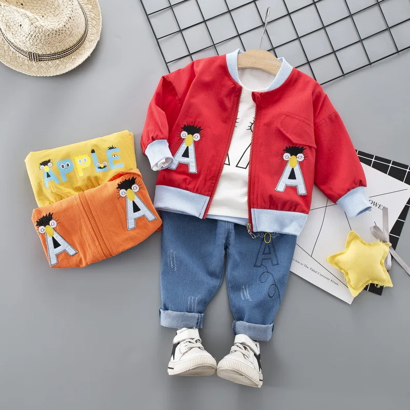 Best Price for boys clothing set Baseball jacket+T shirt+jeans toddler baby boy clothes0-6 years infant boys cloth