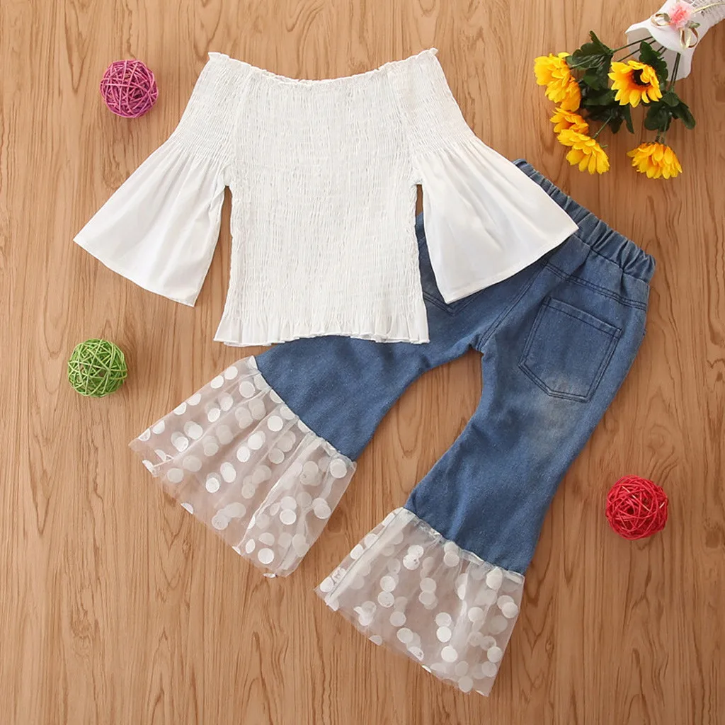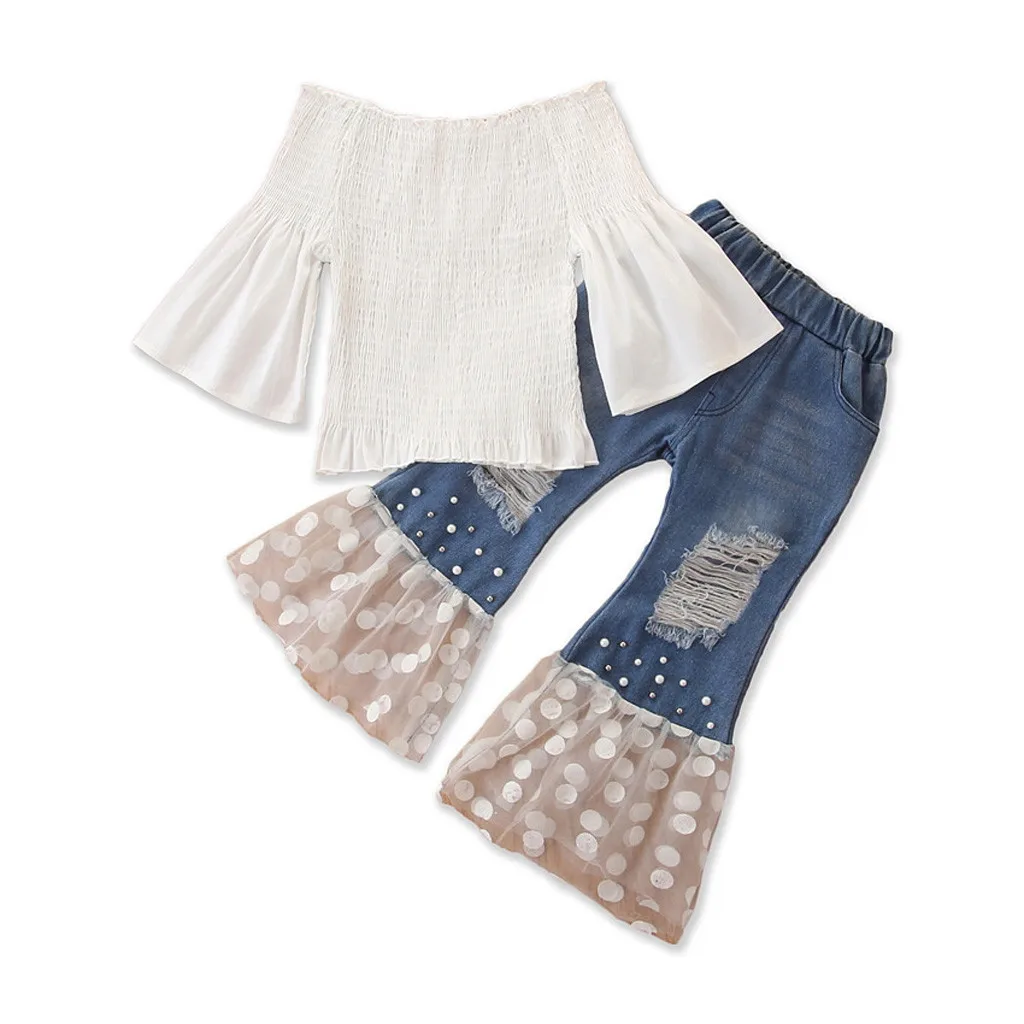 Buy Toddler Baby Girls Mandarin Sleeve Tops+Tulle Ripped Jeans Bell-bottoms Outfits Fashion Girls Dress Right Here and Right Now Just for USD US $17.67, Price will be rise up at any time without notification and I cant guaranted that the stock is still available tommorow or next hour. So Please Save It Now!